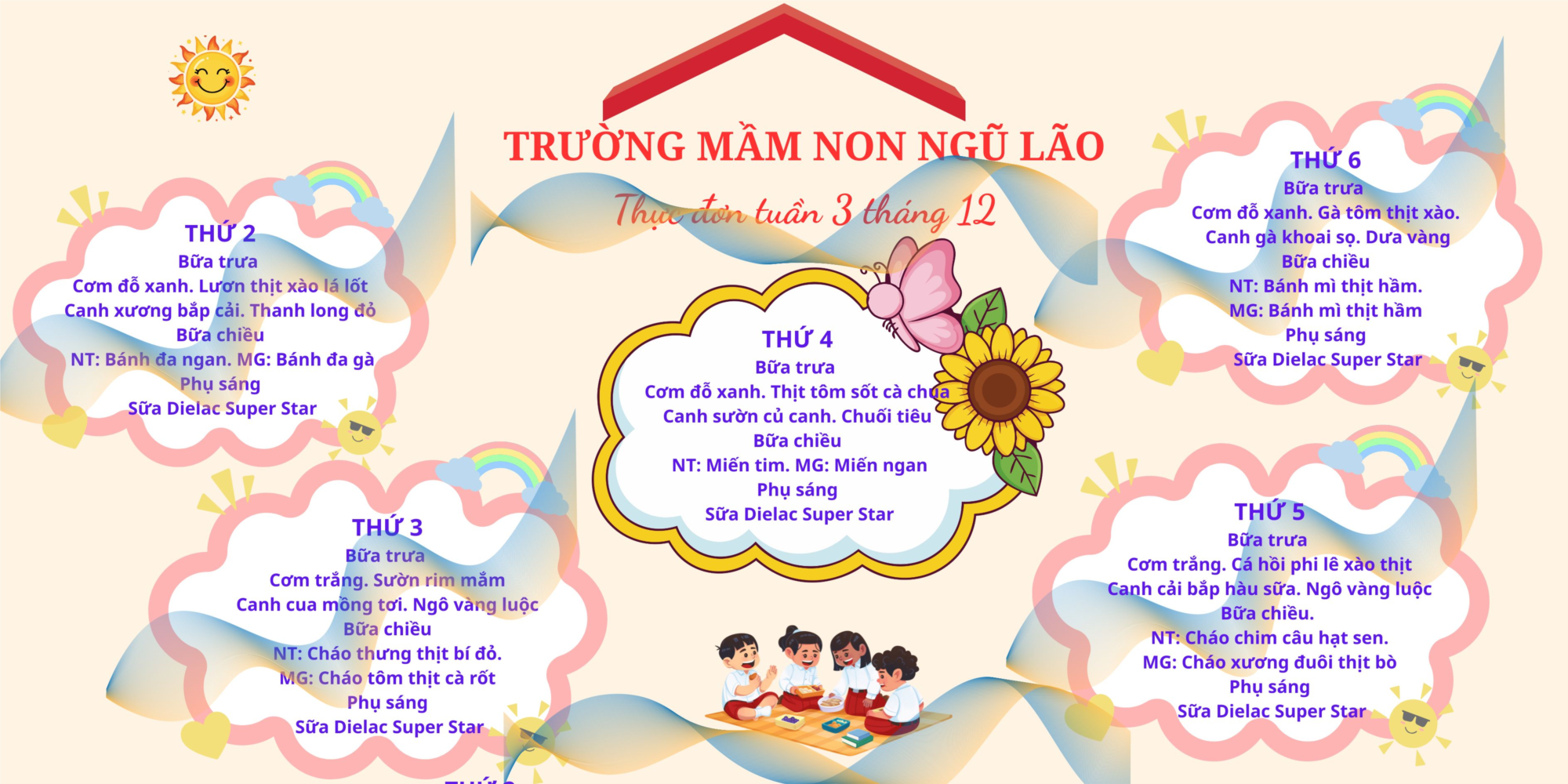 Nhà trường luôn chú trọng lựa chọn thực phẩm tươi ngon, chế biến hợp vệ sinh, đảm bảo an toàn và phù hợp với khẩu vị của trẻ. Rất mong nhận được sự phối hợp, đồng hành của Quý phụ huynh để các bé có những bữa ăn ngon miệng, đầy đủ dinh dưỡng và phát triển khỏe mạnh mỗi ngày