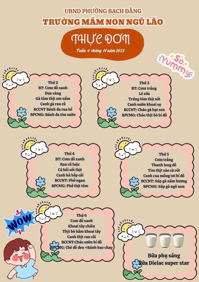 Các cô nuôi luôn dành nhiều tâm huyết và công sức để chuẩn bị từng bữa ăn ngon cho các bé. Từ sáng sớm, các cô đã tỉ mỉ lựa chọn thực phẩm tươi sạch, đảm bảo dinh dưỡng và an toàn. Trong bếp, từng món ăn được nấu nướng cẩn thận, điều chỉnh hương vị sao cho phù hợp với độ tuổi và khẩu vị của trẻ. Không chỉ đơn thuần là nấu ăn, các cô còn gửi gắm vào đó tình thương, sự chăm sóc và trách nhiệm, để mỗi bữa ăn của các bé luôn ấm áp, đầy đủ và giúp các con phát triển khỏe mạnh mỗi ngày.