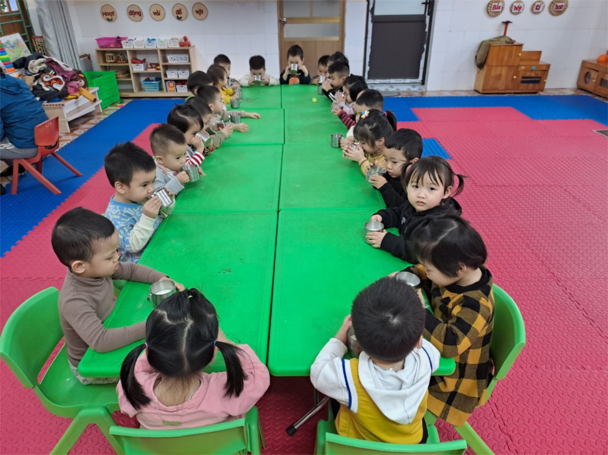 Các cô nuôi tiến hành chia sữa về các lớp theo số liệu bộ phận