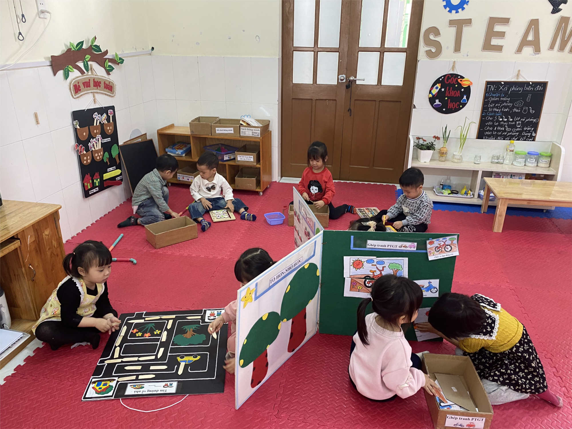 Các con rất tích tực và hứng thú khi tham gia hoạt động góc ở trên lớp!