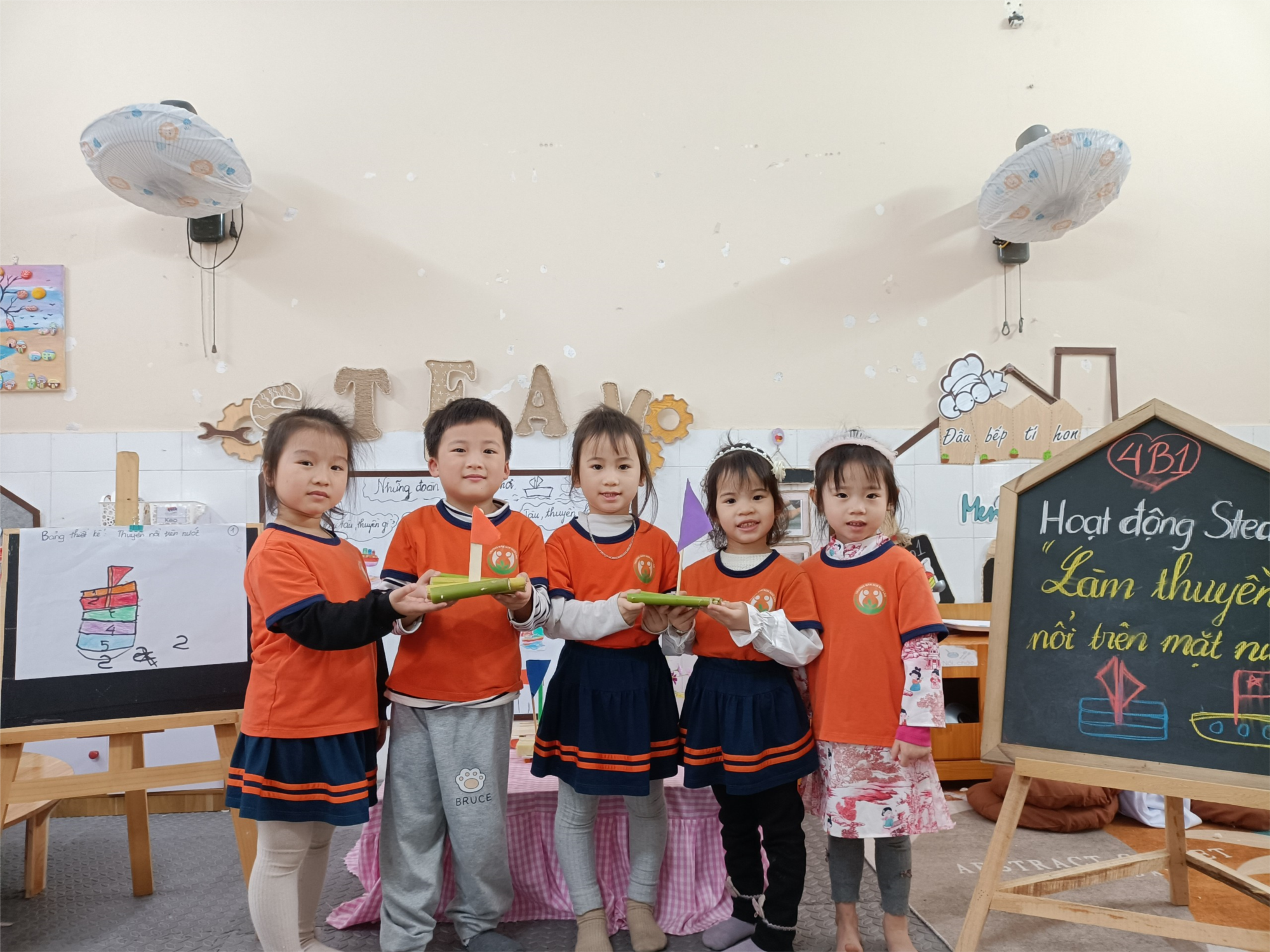 Ở chủ đề " Những đoàn thuyền ra khơi", hôm nay lớp 4B1 tổ chức hoạt động STEAM " Làm thuyền nối trên mặt nước". Các bạn nhỏ được thoả sức sáng tạo làm ra những chiếc thuyền từ các nguyên học liệu khác nhau và có thể nổi được trên mặt nước đấy. Bạn nào cũng vô cùng hứng thú và cố gắng tạo ra những chiếc thuyền đẹp nhất cho nhóm mình.